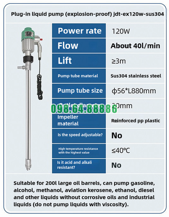 Những lưu ý quan trọng khi cắm điện Bơm chất lỏng cắm điện chống cháy nổ JDT-EX120W-SUS304 đóng vai trò rất quan trọng trong việc đảm bảo an toàn, duy trì độ bền thiết bị và tối ưu hiệu suất vận hành. Do đặc thù làm việc với các chất lỏng dễ cháy như xăng, dầu hay ethanol, việc tuân thủ đúng quy trình sử dụng điện là điều bắt buộc.