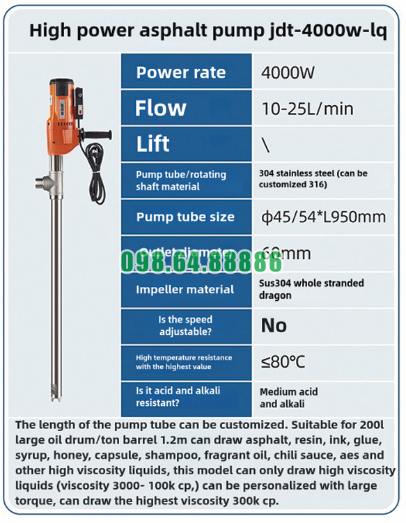 Độ bền ấn tượng của dòng máy bơm nhựa đường cầm tay hút từ thùng phuy JDT-4000W-LQ