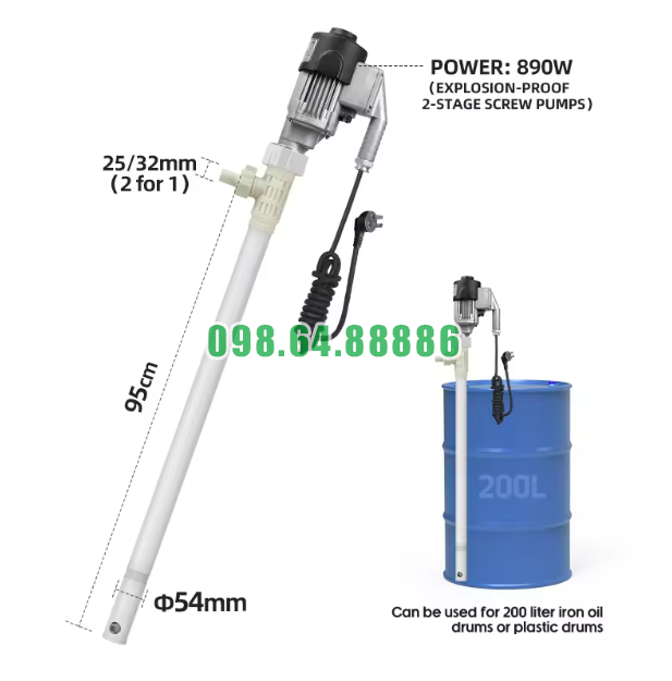 Máy bơm chất lỏng cắm trực tiếp chống cháy nổ JDT-EX890W-RPP có khả năng tự mồi: