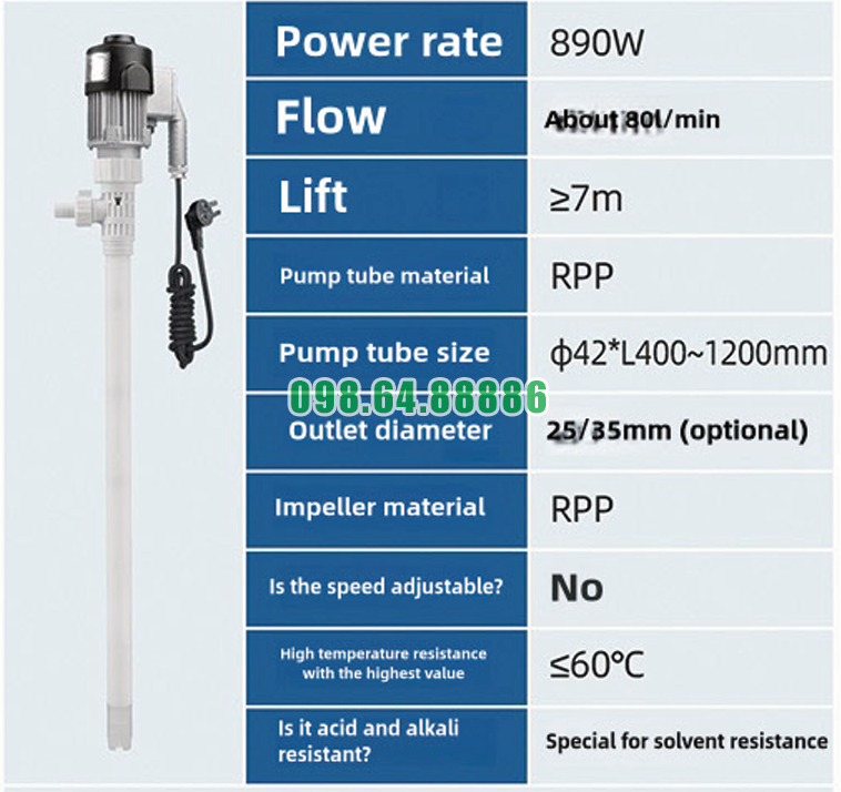 Máy bơm chất lỏng cắm trực tiếp chống cháy nổ JDT-EX890W-RPP được trang bị động cơ chuyên dụng có khả năng: