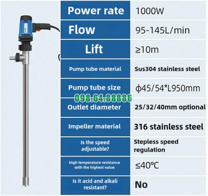 Bơm dầu thùng phuy 200L JDT-1000W-304SUS