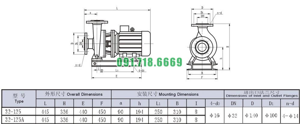 Bơm li tâm trục ngang ISW32-125 đẩy cao 22.3m và hút sâu 2.3m