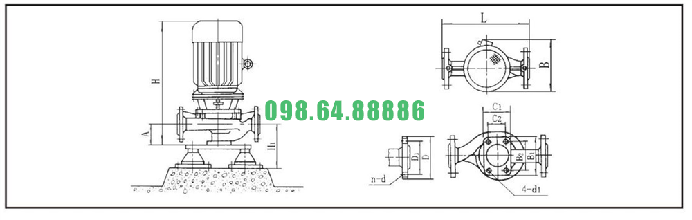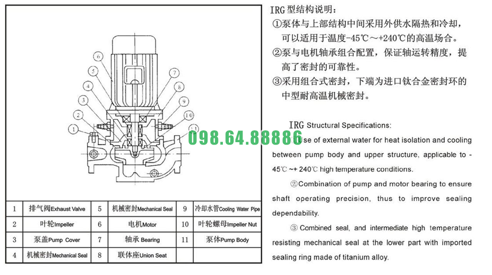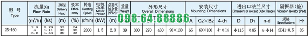 Bơm ly tâm trục đứng model ISG25-160, IRG25-160 có lưu lượng 4 m3/h