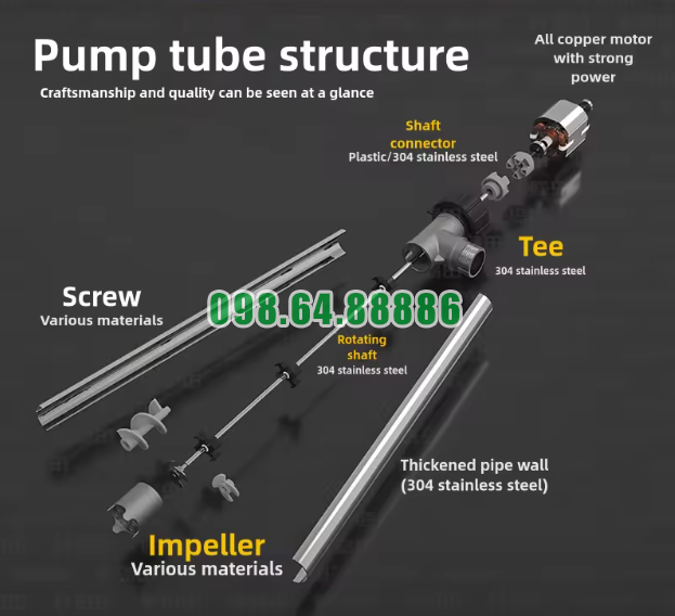 Một trong những điểm tạo nên độ bền của máy bơm nhựa đường cầm tay hút từ thùng phuy JDT-4000W-LQ là phần ống bơm và trục quay được làm từ inox 304, đồng thời có thể tùy chỉnh inox 316 theo nhu cầu. Vật liệu này giúp máy có độ cứng tốt, hạn chế gỉ sét và phù hợp với môi trường làm việc có tính ăn mòn ở mức trung bình.