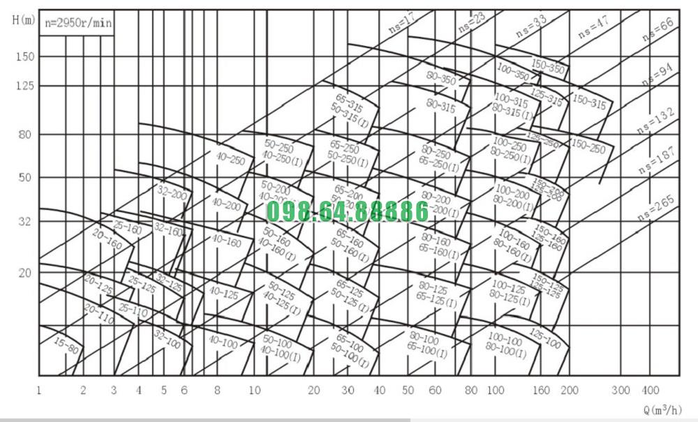 Đường cong hiệu suất bơm nước li tâm trục ngang công suất 65 m3/hs model SLW80-ISW80-160