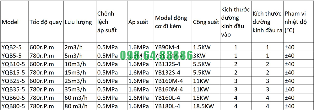 Hiệu suất làm việc tối ưu của Bơm khí hóa lỏng loại YQB2-5 thể hiện rõ qua khả năng: