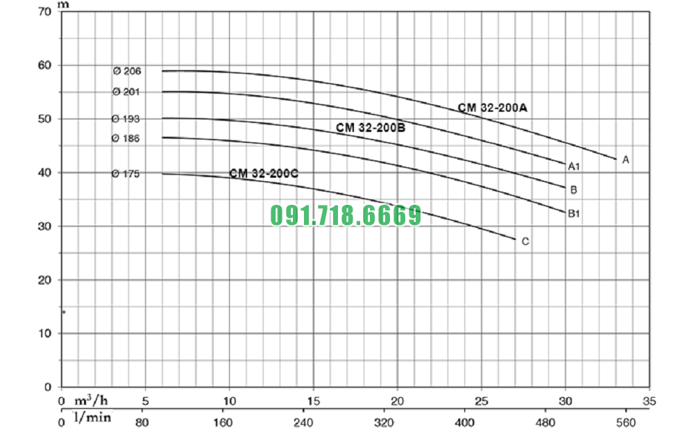 | CM50 - 250C | 78 m3 / h | 70 m | 15 kw | 380 v | Dn65 / 40 mm | Vỏ gang FC200