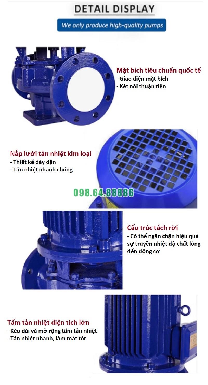 Thuận tiện kiểm tra – bảo dưỡng: nhờ bố trí thẳng đứng, dễ tháo phớt, ổ bi, cánh bơm mà không cần tháo rời toàn bộ hệ thống.