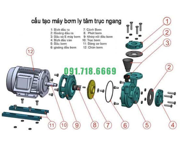 Cấu tạo chung máy bơm nước li tâm trục ngang CM32-200C đường thoát 32 mm
