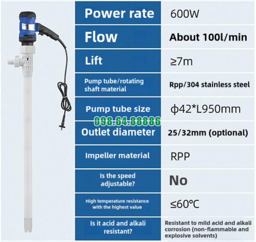 Máy bơm thùng phuy JDT-600W-RPP